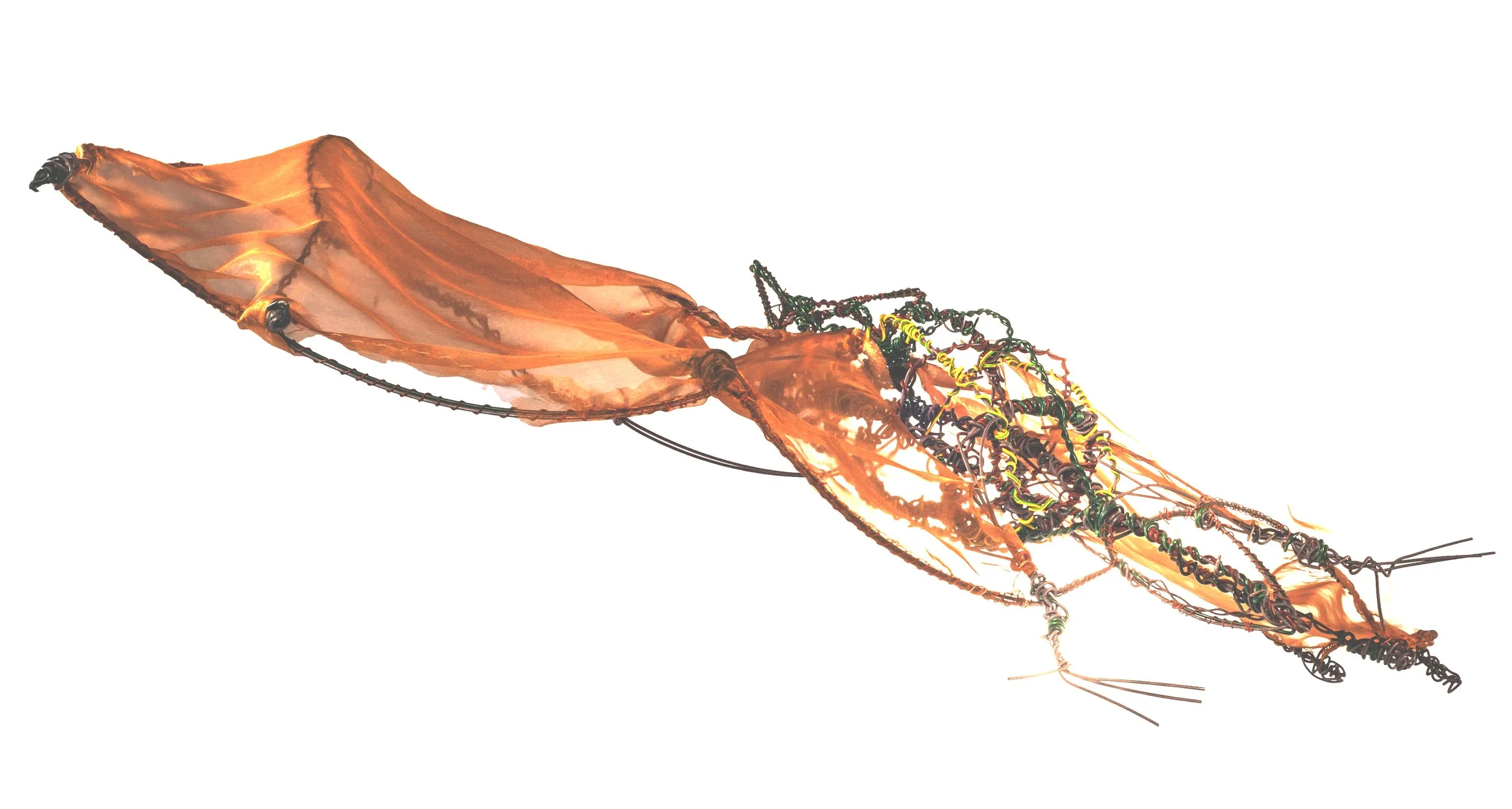 A hovering sculpture is a static sculpture which, according to the artist’s vision, is ideally displayed suspended in the exhibition space, subject to the influence of air and wind.